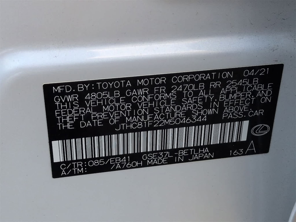 - JTHC81F22M5046344